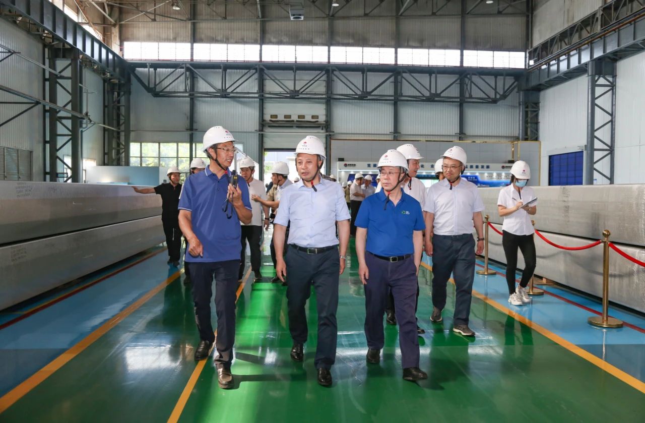 在豫聯集團高精鋁生產現場,中孚實業董事長馬文超向調研組介紹了企業產業規模、綠色發展以及鋁精深加工生產工藝、裝備技術、產品市場等情況。