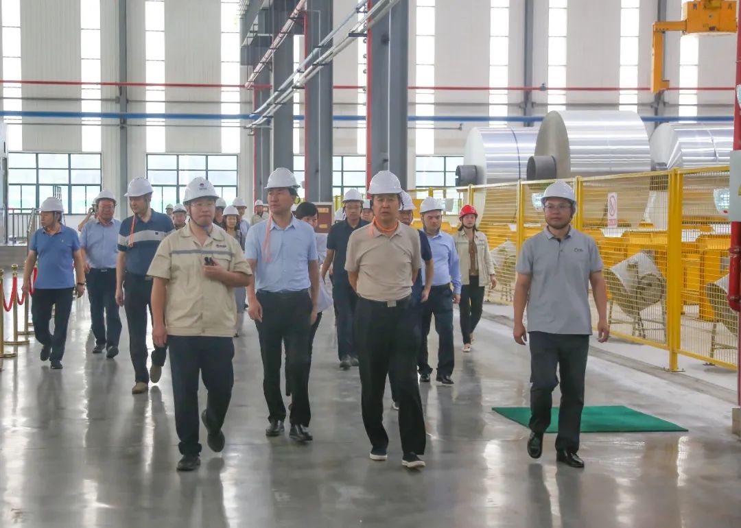 在豫聯集團高精鋁材綠色新型包裝材料生產現場,調研組通過現場參觀、聽取講解等方式,詳細了解了企業在生產經營、產品開發及應用、市場前景等方面的情況,并對企業著力提升自主創新能力、培育核心競爭優勢的做法給予肯定。