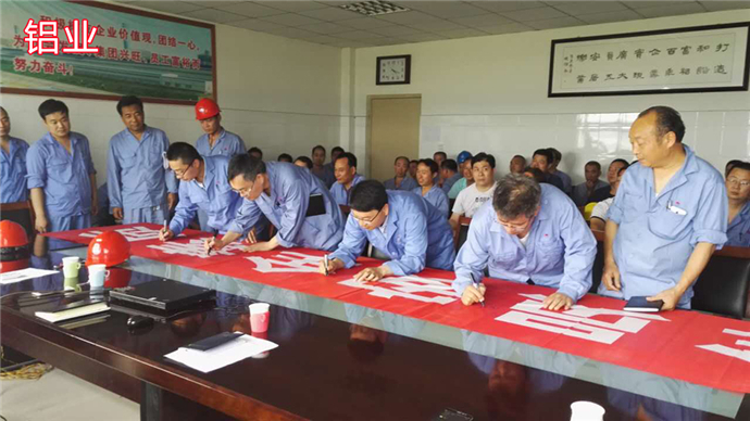 6月6日下午,中孚鋁業公司組織召開安全管理專題會議,對“安全生產月”活動進行動員部署,各分廠班組長以上管理人員50余人參會。會后,公司組織全體參會人員及部分員工進行了安全簽名、宣誓活動。中孚鋁業公司300余員工在“強化安全發展觀念,提升全員安全素質”的橫幅上鄭重簽下自己的名字,并莊嚴宣誓:安全第一,嚴加防范,關愛生命,忠于職守。簽字、宣誓活動不僅增強了全員安全生產的責任感,也為“安全生產月”活動以及今后安全生產工作的順利開展奠定了堅實基礎。(邵鵬克)